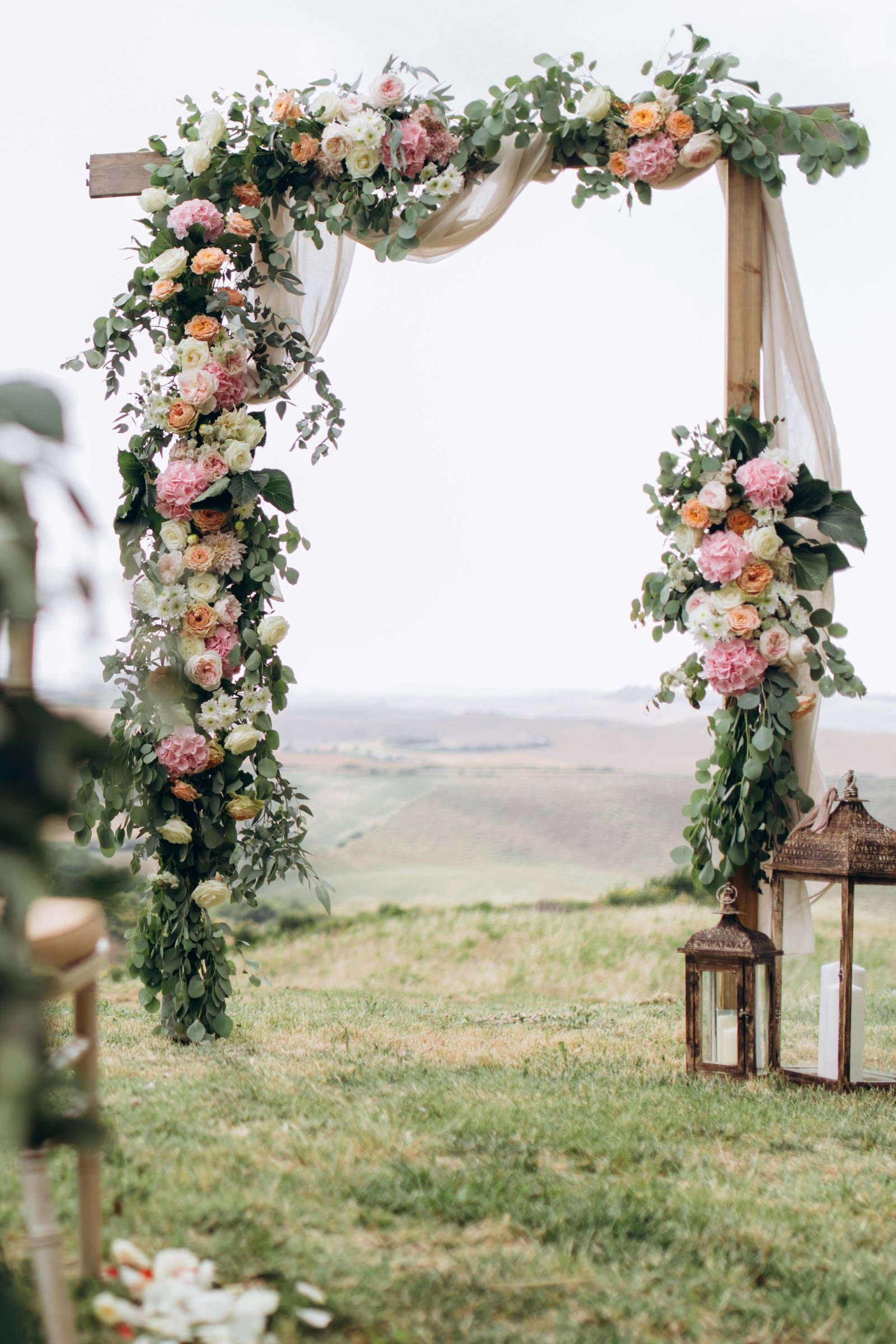 Lanterns: Lanterns can be used to light up a pathway and add a warm and cozy atmosphere to an outdoor event. Use different sizes and shapes of lanterns to create an interesting and dynamic look.