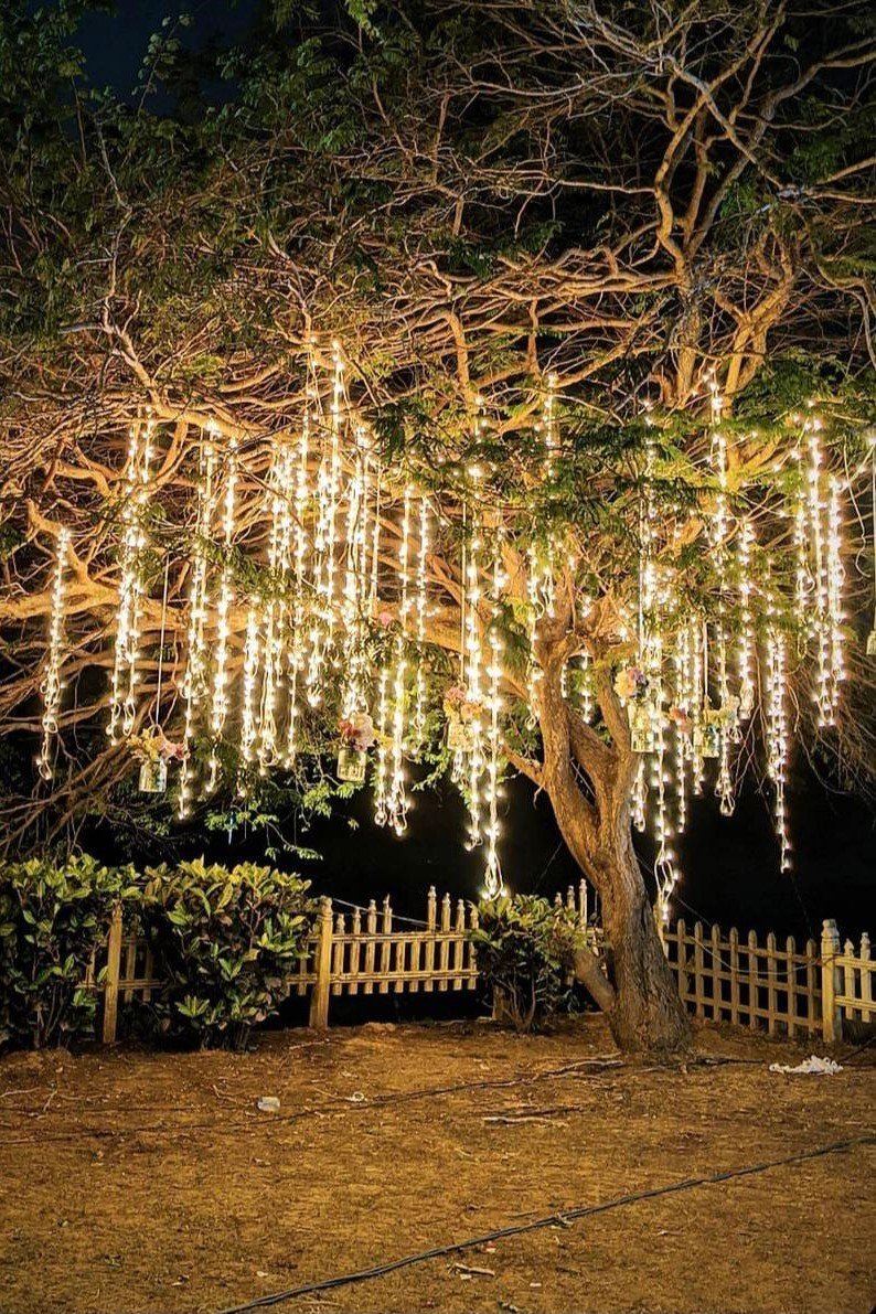 String lights: String lights are a popular choice for outdoor events, such as weddings and garden parties. They can be hung from trees, wrapped around columns or placed along the pathway to create a warm and cozy atmosphere.