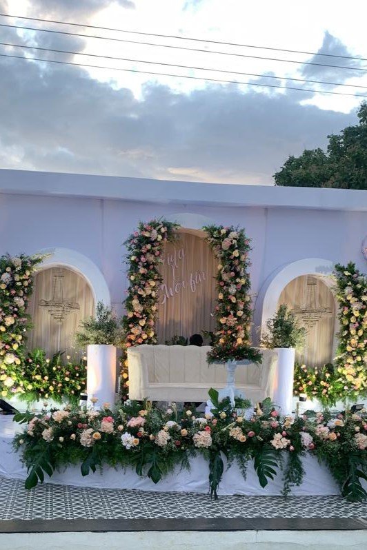 Flowers: Flowers are a popular choice for traditional stage decoration, and different flowers can be used depending on the occasion. For example, roses and carnations are often used for weddings, while marigolds and lotus flowers are commonly used in Indian cultural events.